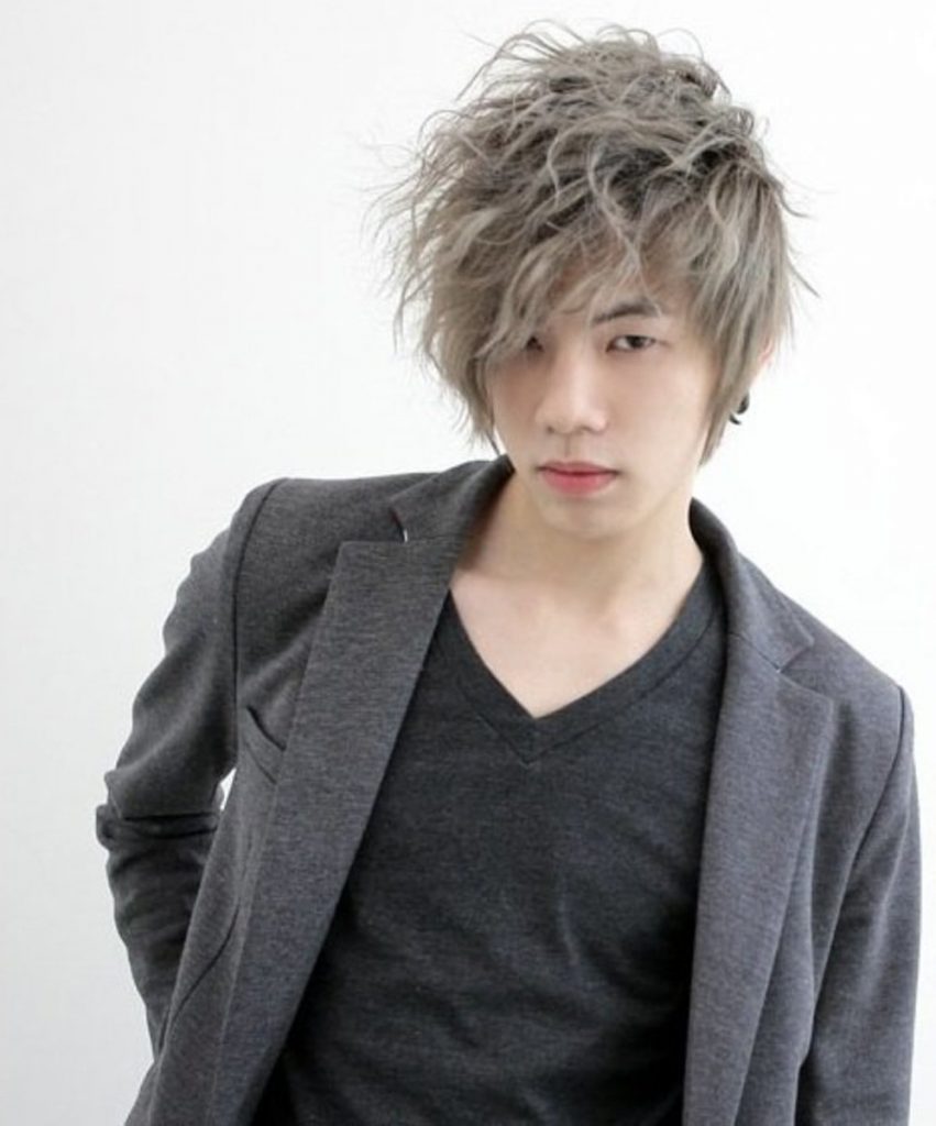 Это наиболее удобный вариант для тех европейских мужчин, которые хотят сделать стрижку в корейском стиле, но не могут найти подходящую из-за курчавых волос. Мастер должен расположить в хаотичном порядке рваные прядки на голове клиента. Но в целом должен получиться образ, при котором такой беспорядок будет продуманным и удобным для укладки.