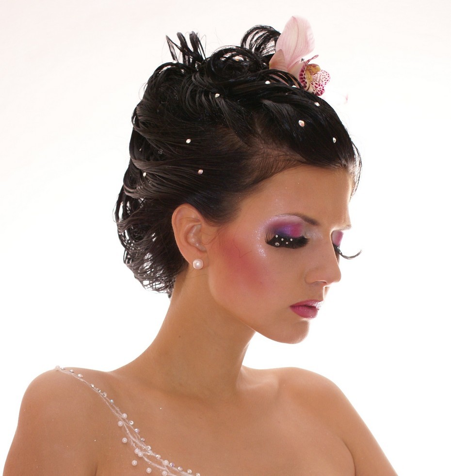 Даже высокие прически, с укладкой на макушке, согласно сегодняшним трендам, выглядят непринужденно и свободно. Достаточно приподнять предварительно завитые локоны к макушке скрутить их в жгут, закрепить его с помощью заколок, а концы прядей закрепить в свободном хаотичном порядке шпильками, не стараясь придать укладке слишком аккуратные и правильные очертания
