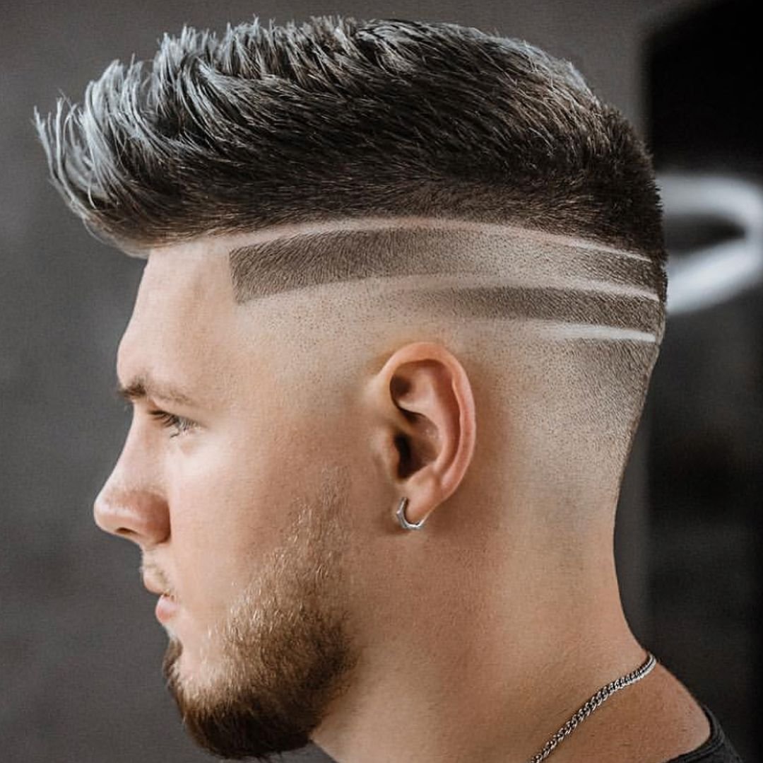 Один из лучших методов быстро и просто обновить свой образ. Здесь можно оставить свою длину волос, а можно выбривать почти все, оставляя лишь легкую полоску прядей. В зависимости от профессионализма барбера, он создает на волосах настоящие узоры, рисунки и даже надписи. Стрижка очень характерна для молодых парней, которые учатся в школе или институте.