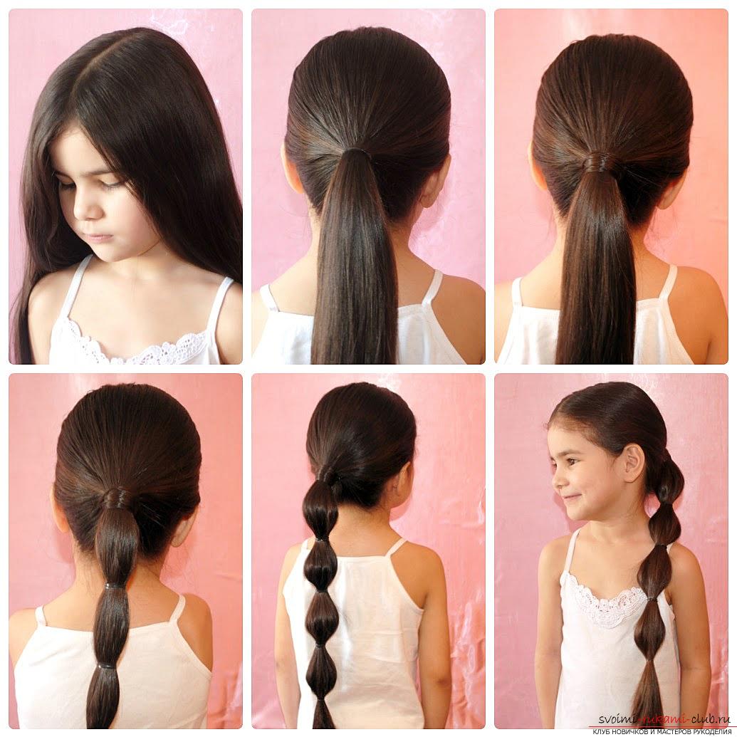 Чтобы выполнить эту прическу, понадобятся прозрачные резиночки. Создается она с помощью хвостиков и их прокручивания. Пошаговое фото наглядно покажет, как сделать эту крутую прическу девочке.