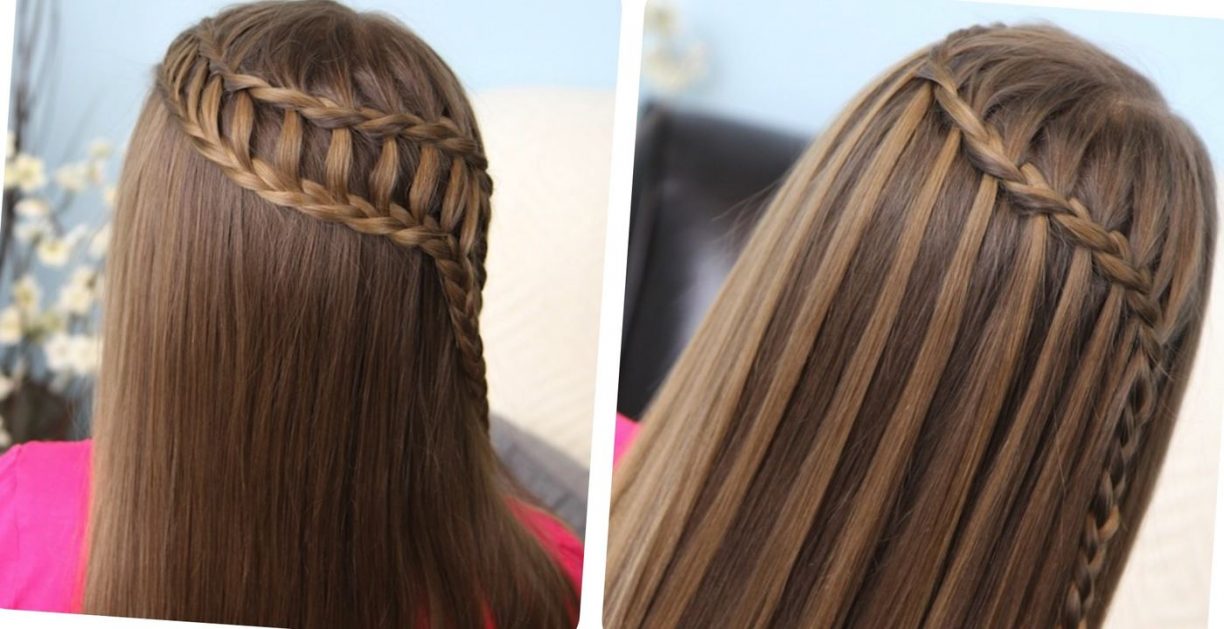 - На каждой стороне заплести косичку по технологии французского водопада (оставляя свисать нижние пряди и добавляя новые прядки на их место).