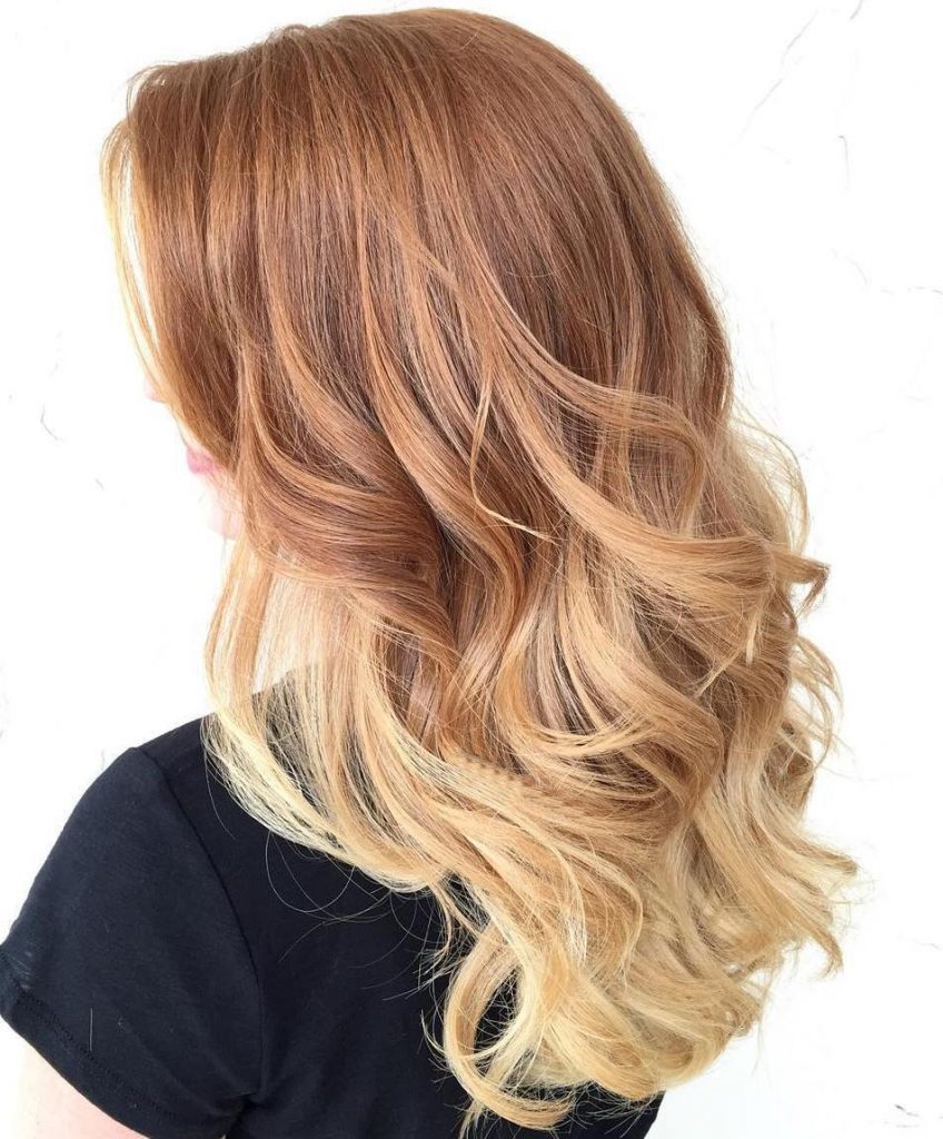 Если девушка природная блондинка, то золотые и карамельные тона станут прекрасным дуэтом для естественного цвета.