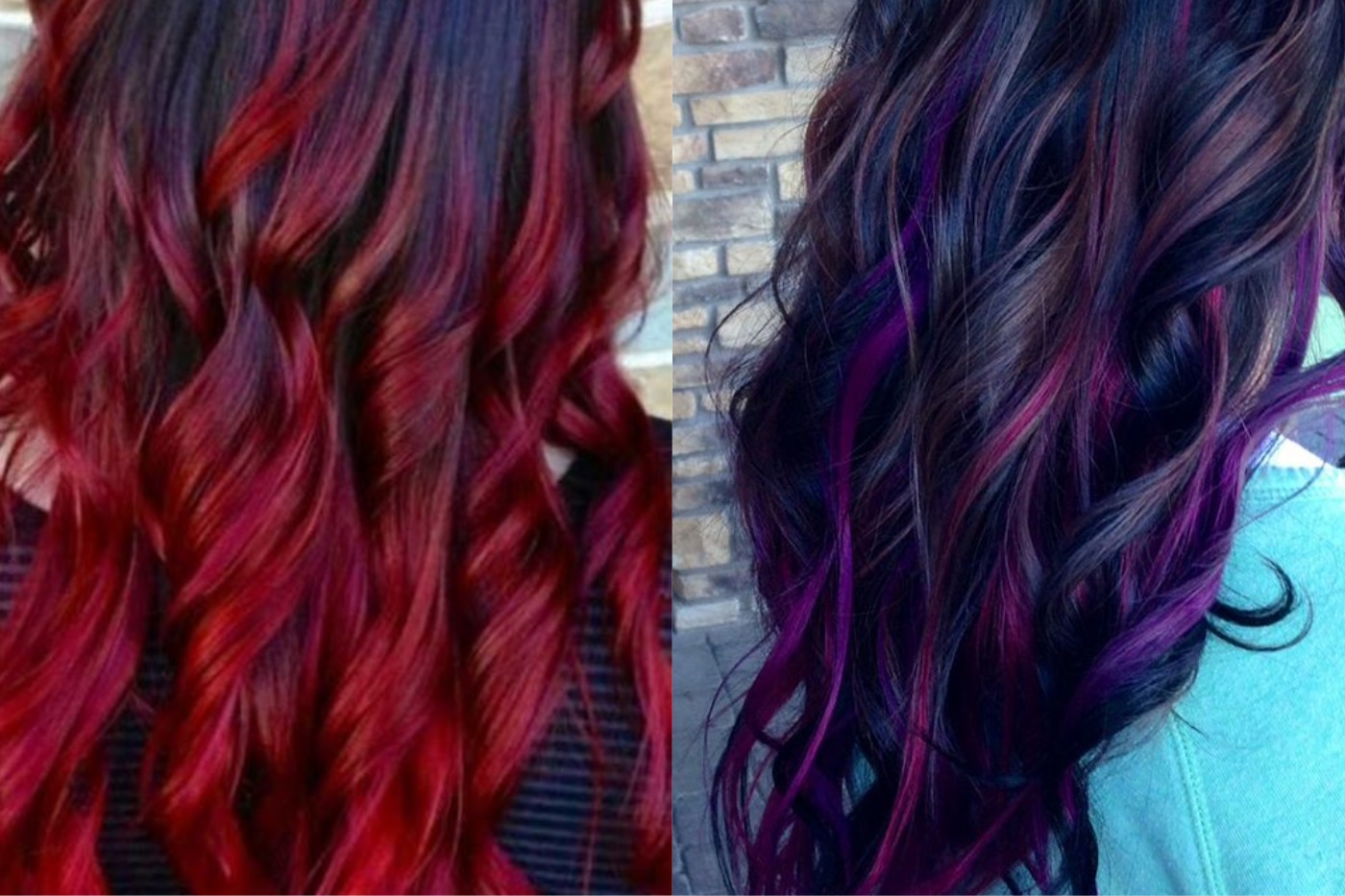 Брюнетки будут ярко выглядеть с огненными, баклажановыми и сливовыми кончиками волос.