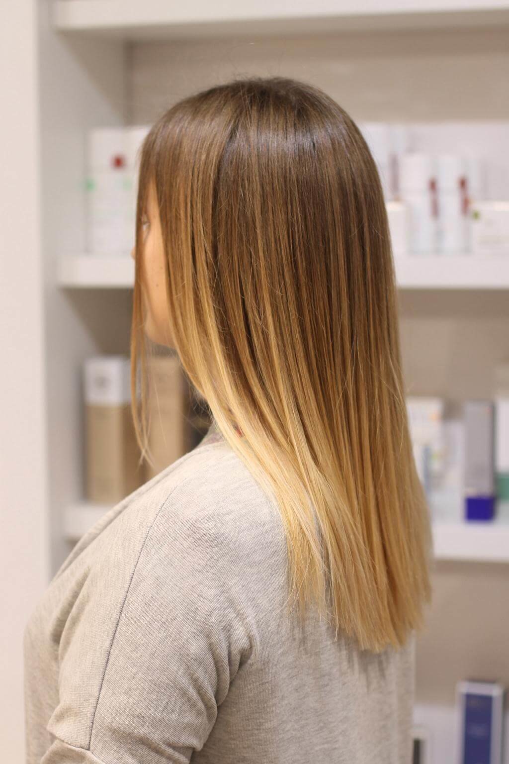 - Мягкий переход от темного к более светлому цвету — данная технология окрашивания позволяет получить эффект плавного углубления цвета у корней волос с максимально естественной границей цветового перехода.