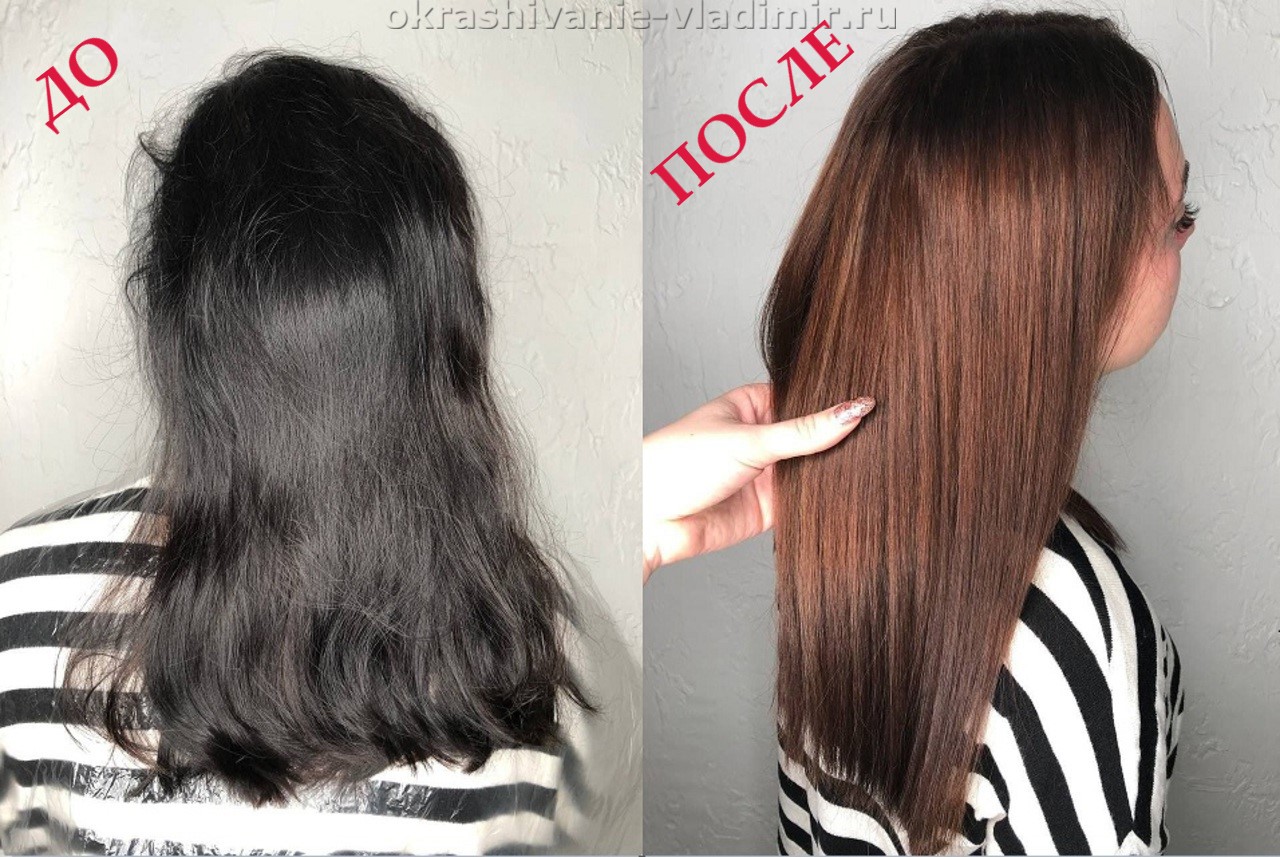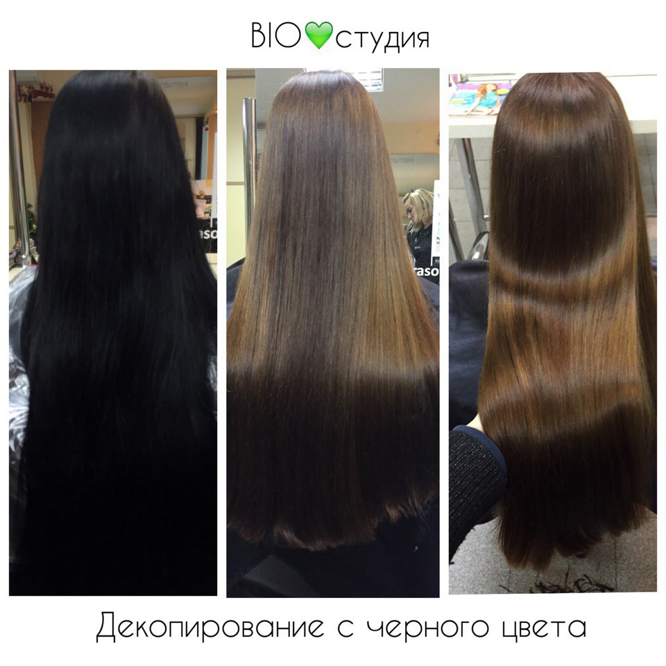 Сейчас салоны предлагают обесцвечивающие средства, которые меняют цвет на целых 4 тона. Но есть у этой процедуры и огромный недостаток — после нее вы рискуете стать рыжей! Конечно, цвет можно закрасить или провести повторное обесцвечивание, но придется подождать не менее двух недель. Имейте в виду, что подобные средства могут сильно отразиться на здоровье шевелюры — нарушается структура, концы начинают сечься, доходит даже до выпадения. Одна из самых популярных профессиональных процедур, которая помогает убрать черный пигмент из волос, — декапирование смывка.