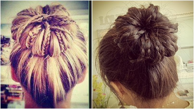 - Если остались длинные волосы, из них можно сплести косичку и обернуть ее вокруг пучка.