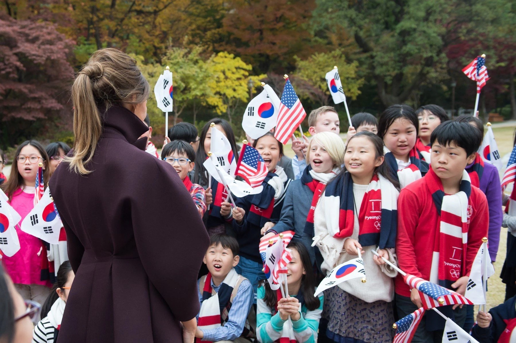 Her makeup looked perfectly highlighted and contoured. This is probably one of Mrs. Melania Trump’s finest looks.