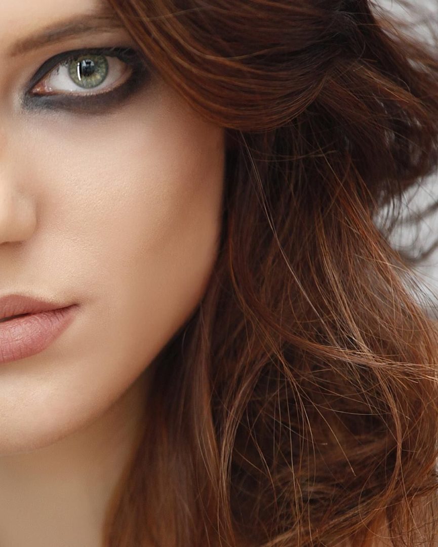 Зеленоглазым девушкам и женщинам очень повезло, поскольку они могут подбирать себе практически любые цвета волос. Если светлые оттенки придают мягкости и женственности, то темная палитра позволит сделать образ более ярким, притягательным и очаровательным. Удачным решением станет смешивание нескольких темных оттенков схожих между собой. Это может быть полное или частичное окрашивание.