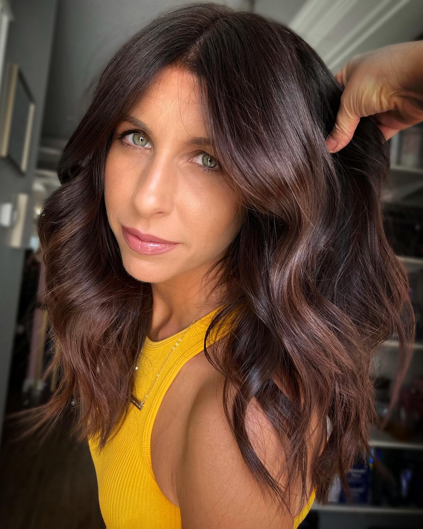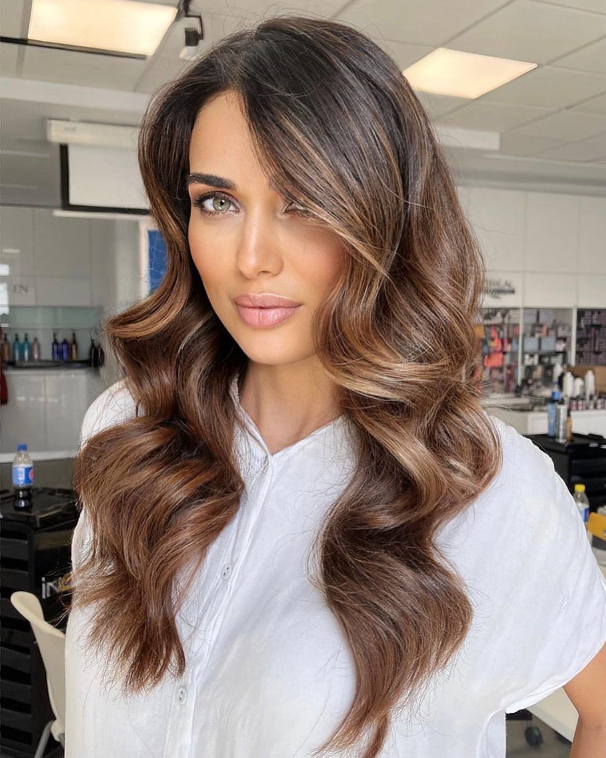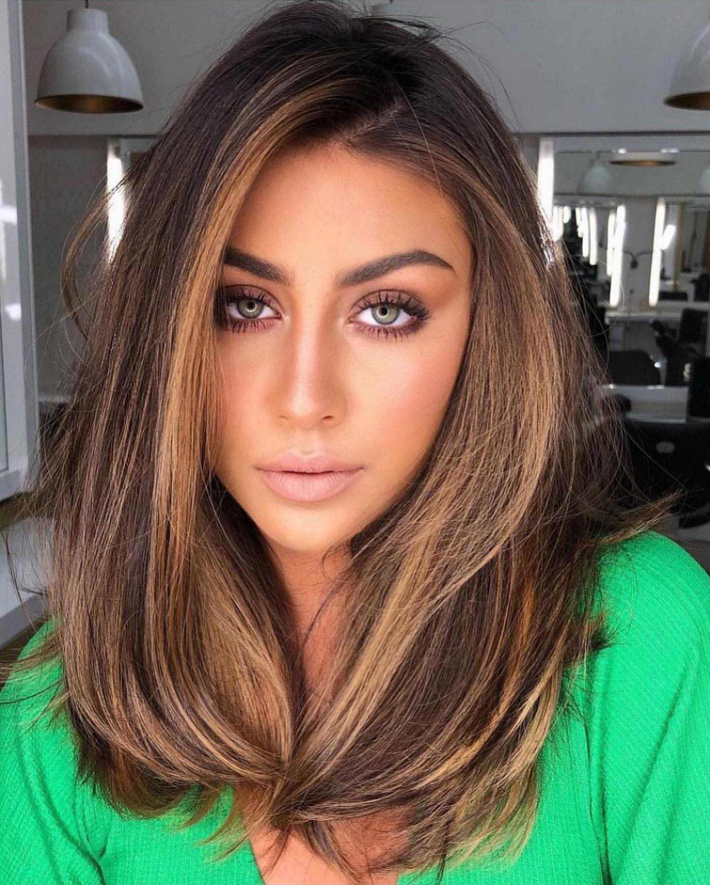 Зеленоглазым модницам стоит присмотреться в 2024 году к популярному однотонному окрашиванию волос в шоколадной цветовой гамме. Эта довольно разноплановая палитра, в которой можно найти: медовые, ягодные, золотые и холодные подтоны. Естественно последний вариант не для зеленоглазых леди, мы это уже запомнили, никакого холода и пепла на волосах.