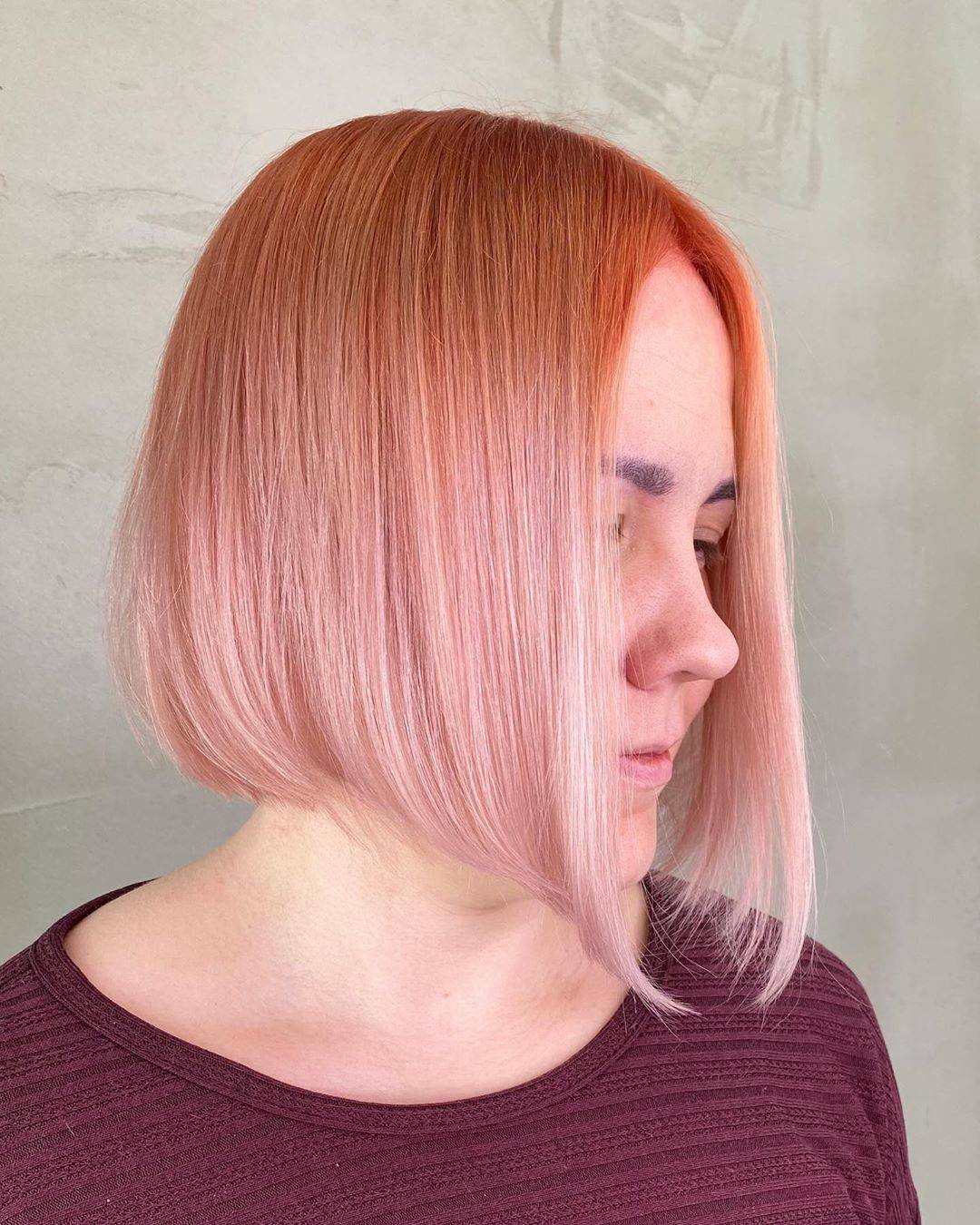 Рыже-розовое каре на волосах средней длины / @hairbysatukylatasku