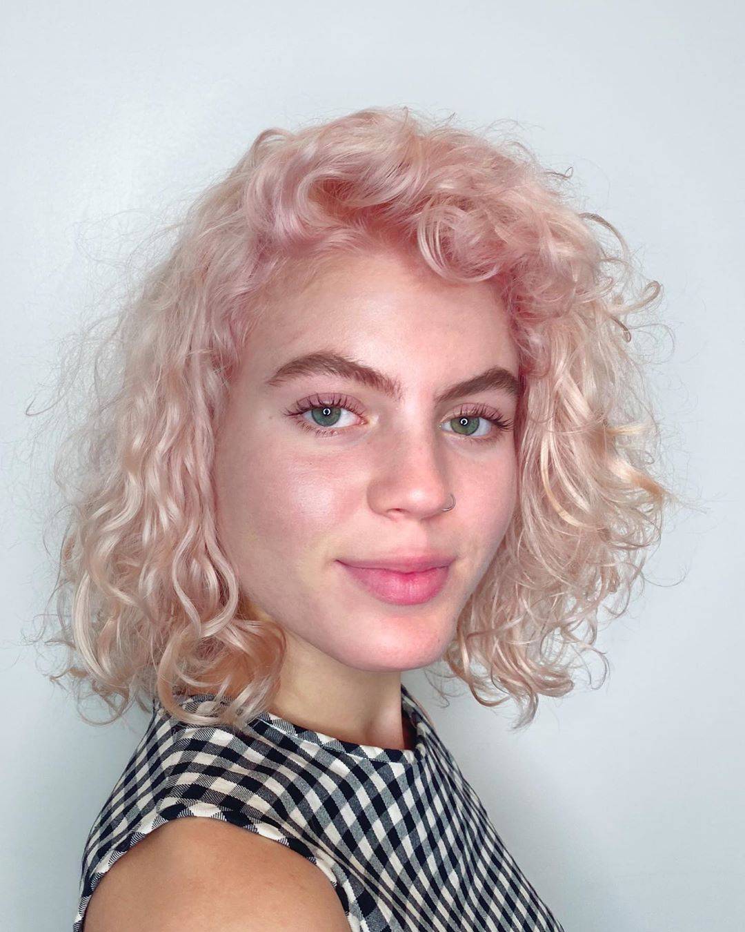 Желто-розовые кудри на волосах средней длины / @carmenwaltz