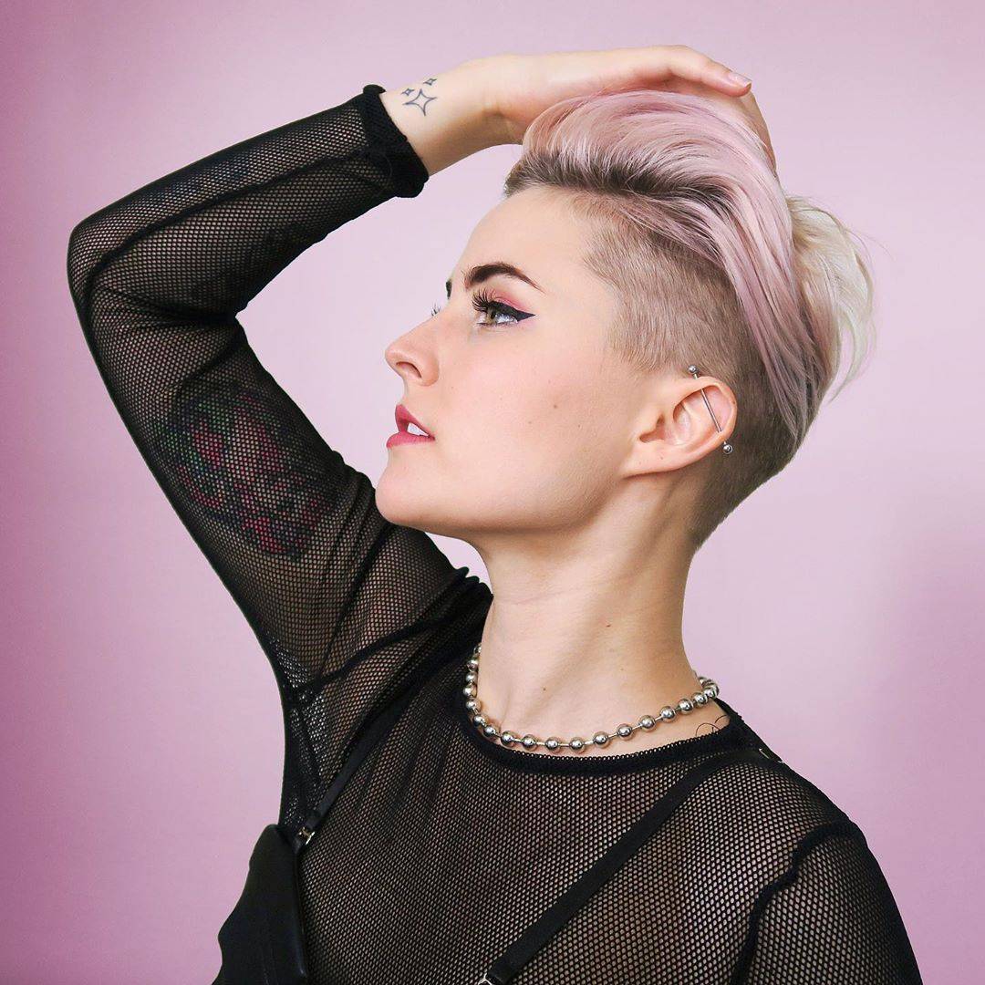 Серебристо-розовые волосы со стрижкой пикси / @emperiam
