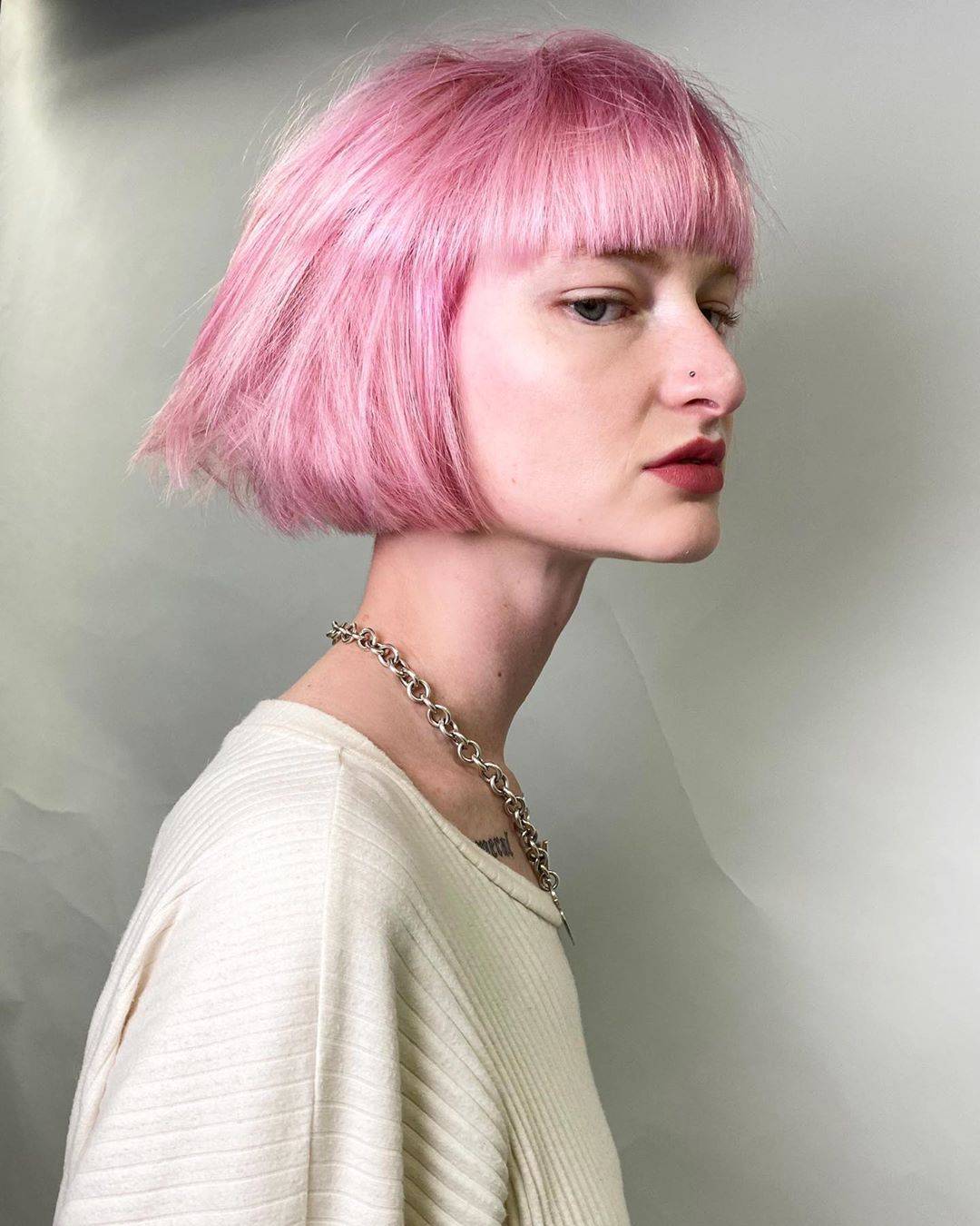 Розовое каре с челкой / @lyndalsalmon
