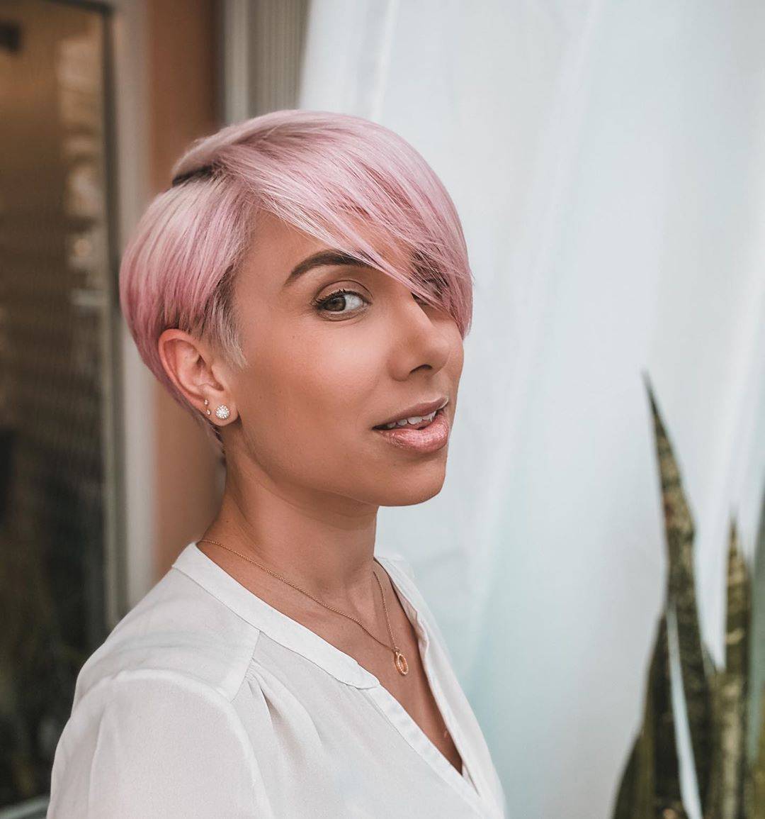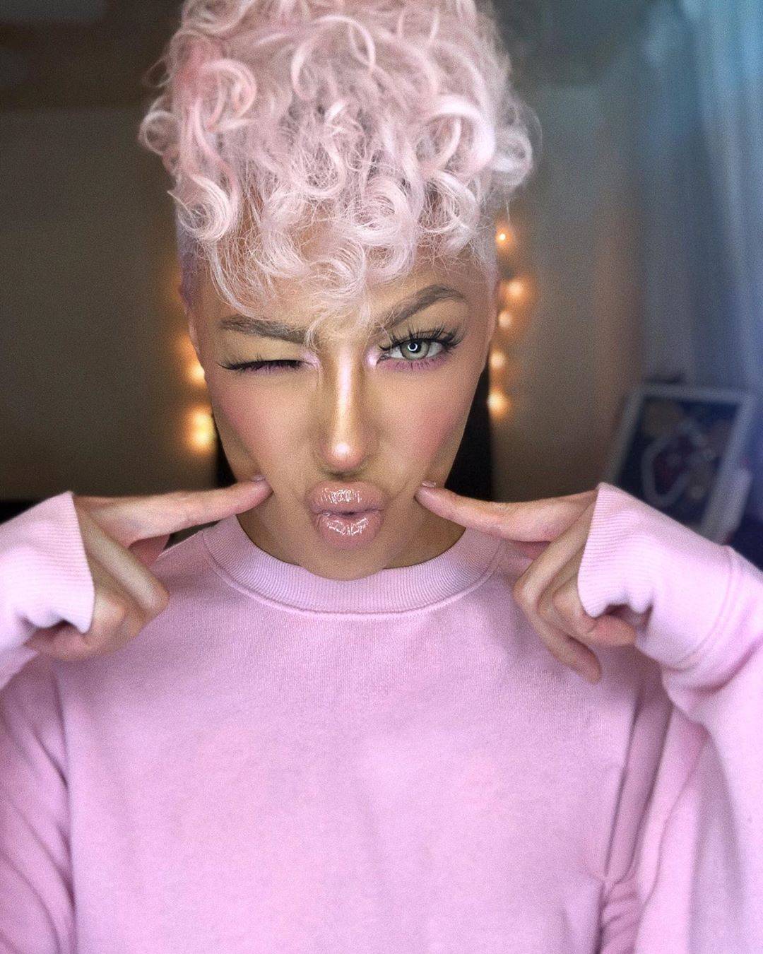 Нежно-розовые короткие волосы / @chellsyglam