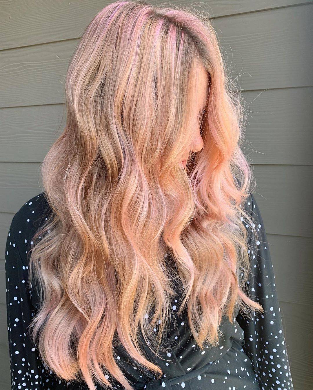 Персиково-розовый оттенок на длинных волосах / @ivyleighhh
