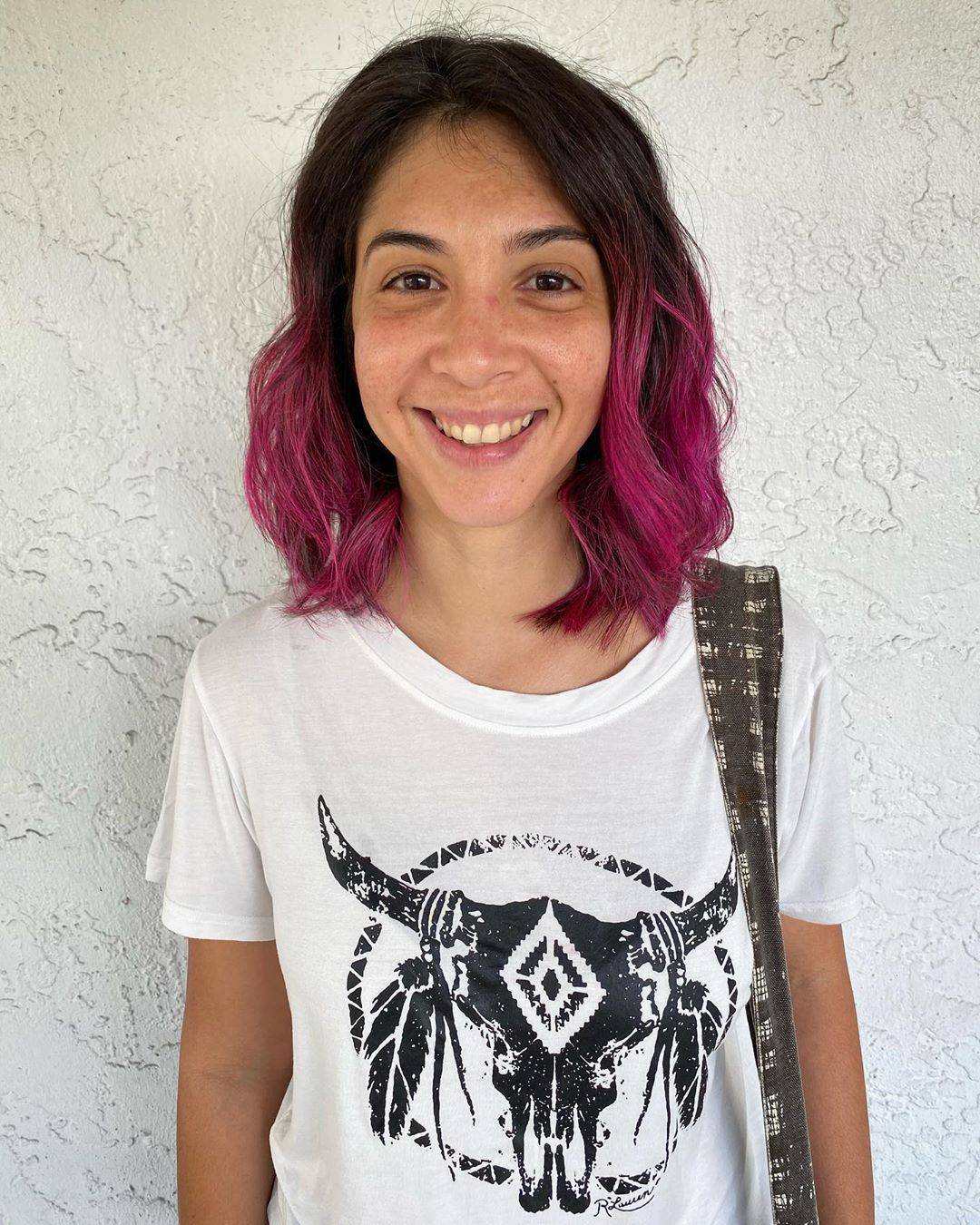 Темно-розовое омбре на волосах средней длины / @loxbytayler