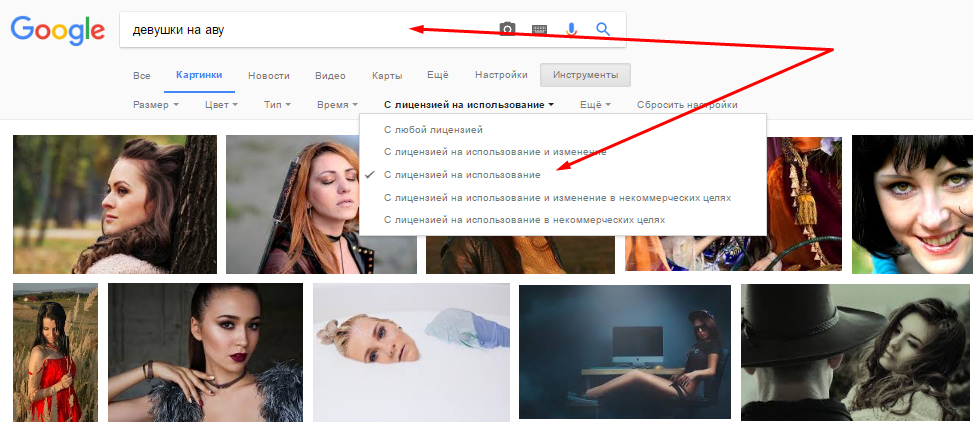Чтобы гарантированно быть уверенными в том, что фото разрешено для использования, выберите при поиске следующее: «с лицензией на использование»