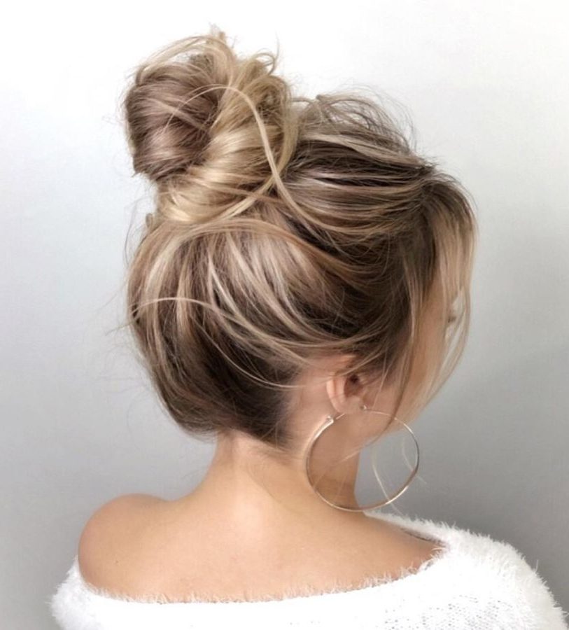 Есть два варианта выполнения такой прически. Либо вы стягиваете волосы в жгут, а затем заматываете его не макушке и фиксируете шпильками, либо делаете хвост, а затем обматываете локоны вокруг резинки и также фиксируете шпильками. Любой способ актуален в этом сезоне. У вас получится небрежная прическа, которую можно сделать для похода по магазинам или для занятий фитнесом. Если на работе правила не слишком строгие, то также можно ее выполнить. Она подходит для любого типа лица и волос.