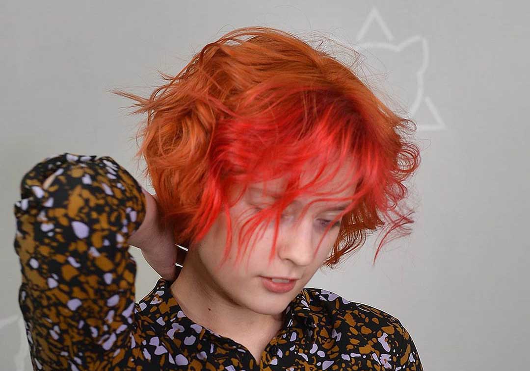 Короткие волосы можно красить. Особенно интересно смотрится бахрома, окрашенная «перьями» в другой цвет из общей массы локонов.