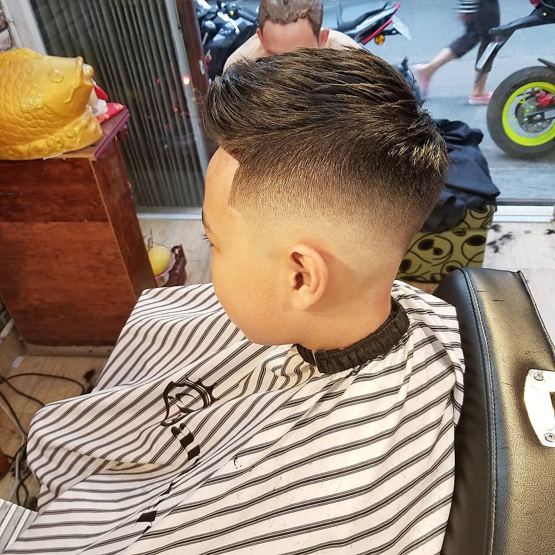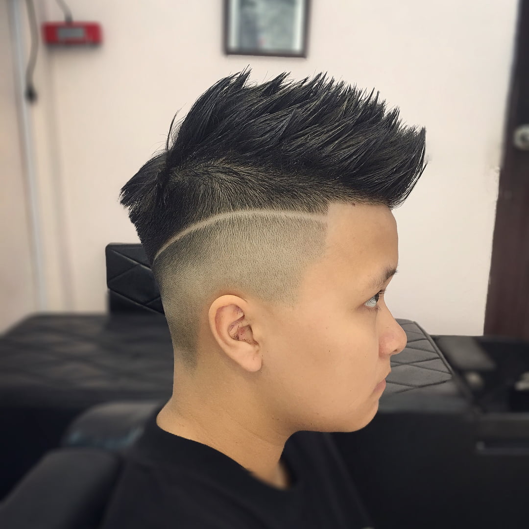 Короткие волосы на затылке и висках колеблются от 2 до 9 миллиметров. Длина верхних прядей варьируется от 5 до 10 сантиметров, мужчины могут приподнять их вверх или зачесать набок.