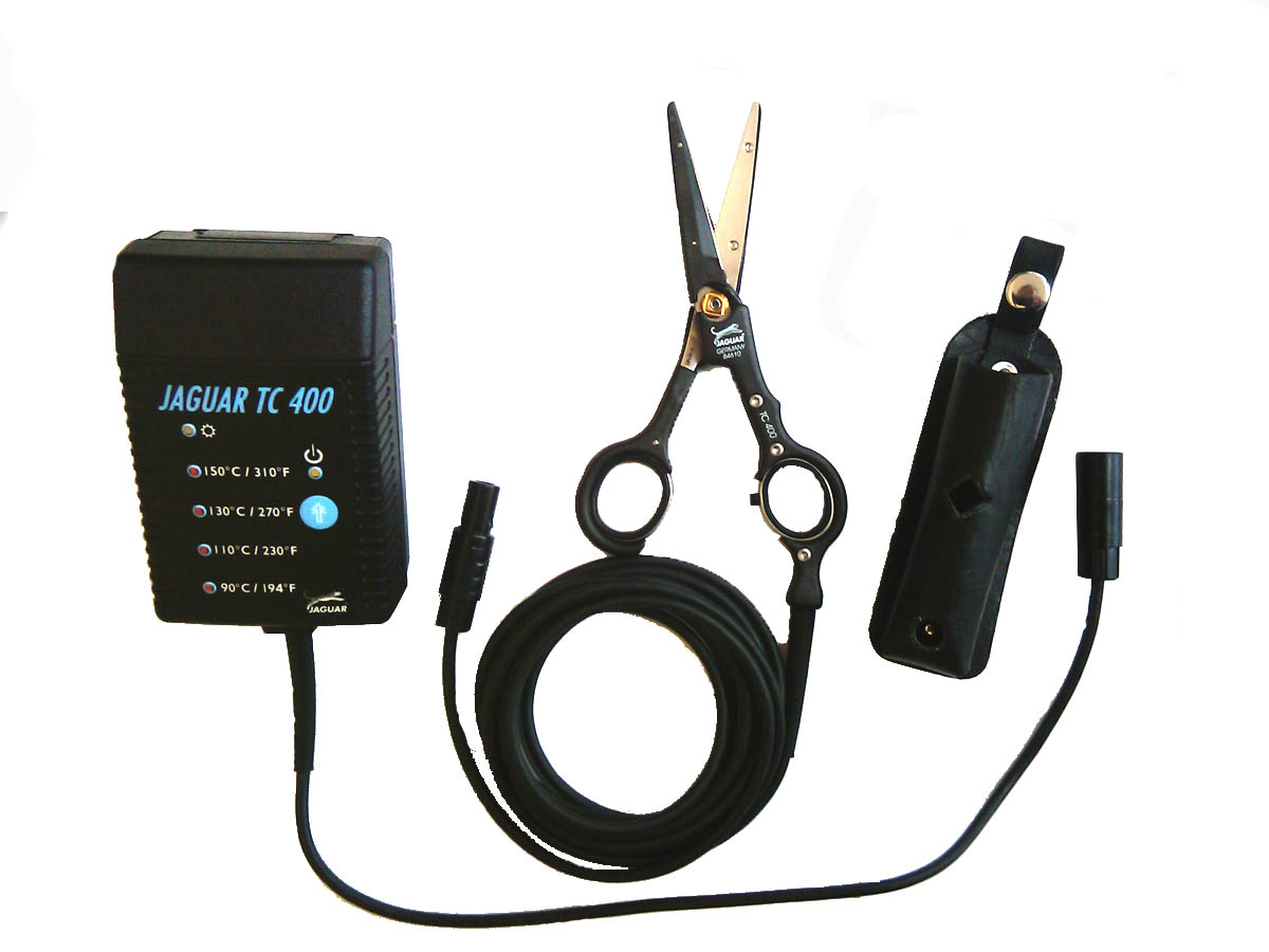 Инструмент внешне напоминает обыкновенные парикмахерские ножницы с одним отличием: он подключается к электросети с помощью сетевого адаптера. Также в набор может входить: регулятор температуры, филировочные ножницы и бритва, которые тоже работают от сети.