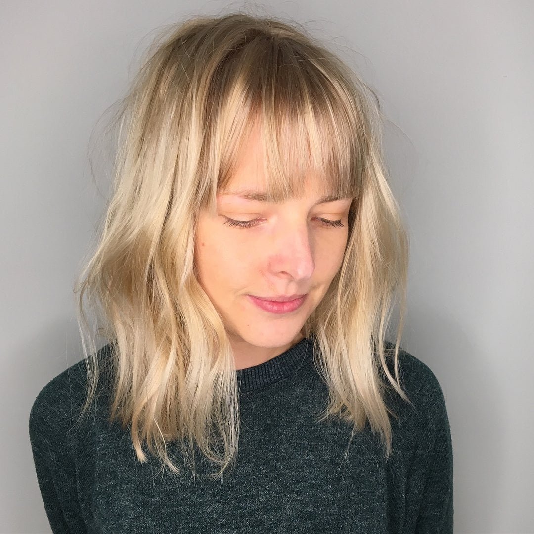 Если вам нужен образ, который выглядит немного беспорядочно, то этот незряшный боб каре с челкой и острыми кончиками волос прекрасно вам подойдет. Попросите парикмахера сделать вам длинные боковые пряди волос, которые будут обрамлять лицо. Вы также можете покрасить волосы в красивые бледные блонды нежного пастельного, розового цвета. Это идеально, если вы хотите получить более утонченный и женственный образ, который по-прежнему будет веселым и модным.
