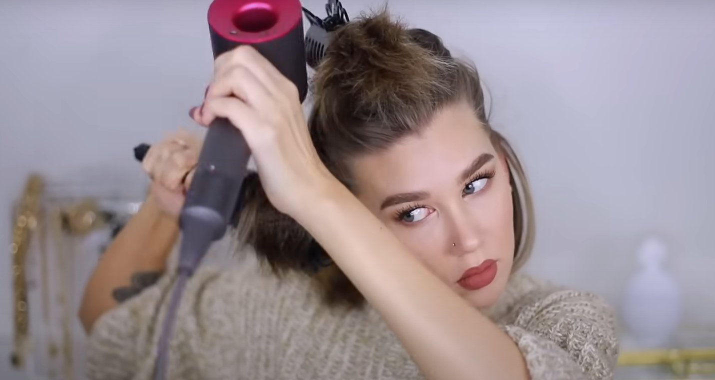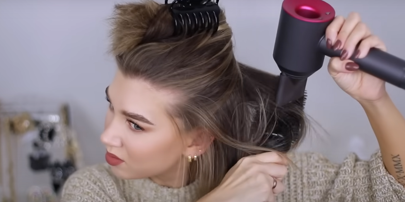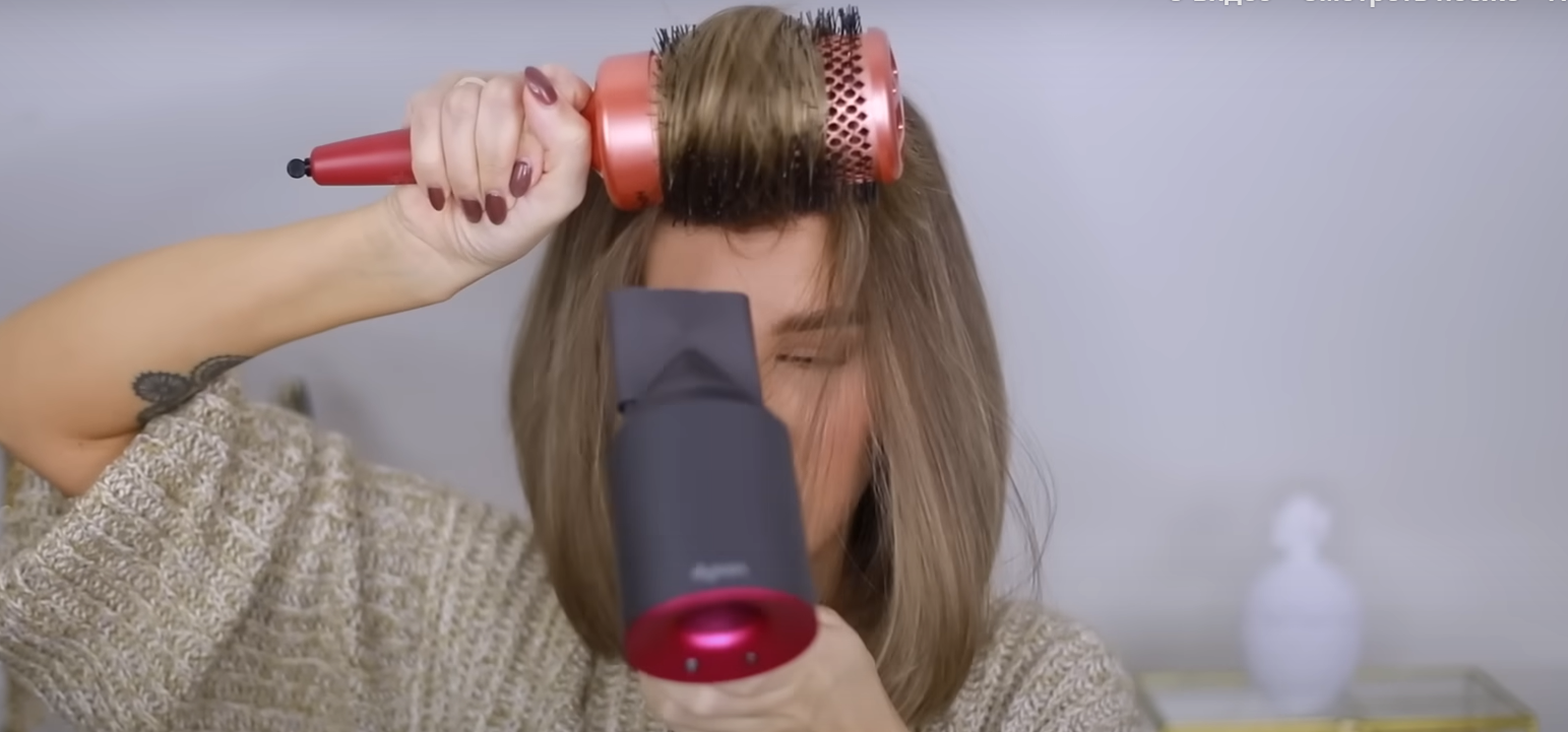 Локоны сушат феном, направляя в противоположную сторону от линии роста. Это поможет придать объём у корней.