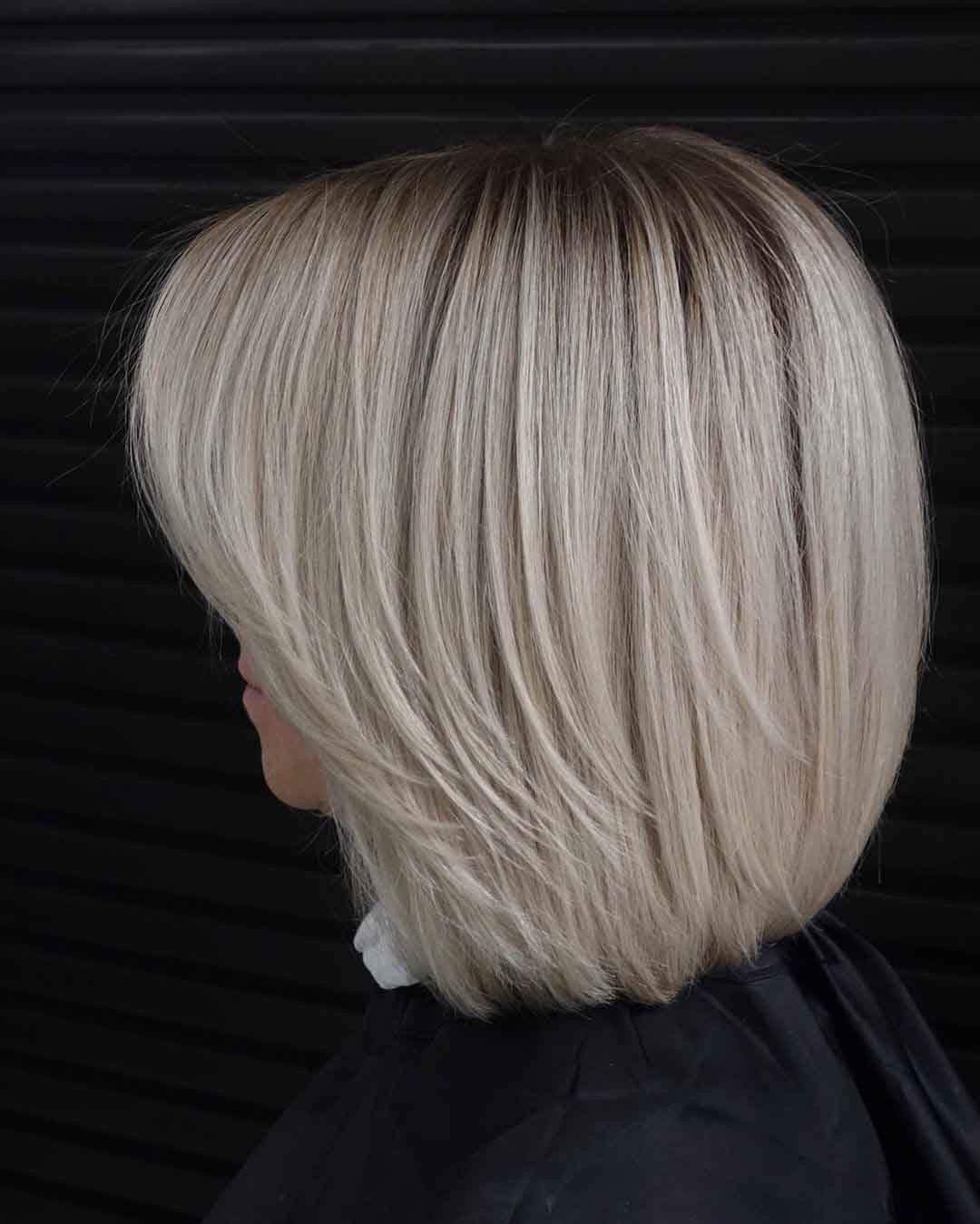Длинные боковые челки всегда выглядят великолепно, но в сочетании с окрашиванием балаяж, они становятся еще более современными. Темные и светлые оттенки блонда идеально дополняют друг друга.