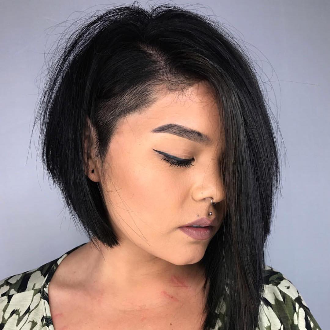 Такая весьма необычная тенденция моды среди женских стрижек отражает главную черту самых актуальных образов в современном стиле. В такой стрижке асимметричность достигается за счет укладки, выбритого виска в одной части головы, пробора или косой челки. Подобный акцент закладывается мастером еще на уровне задумки.