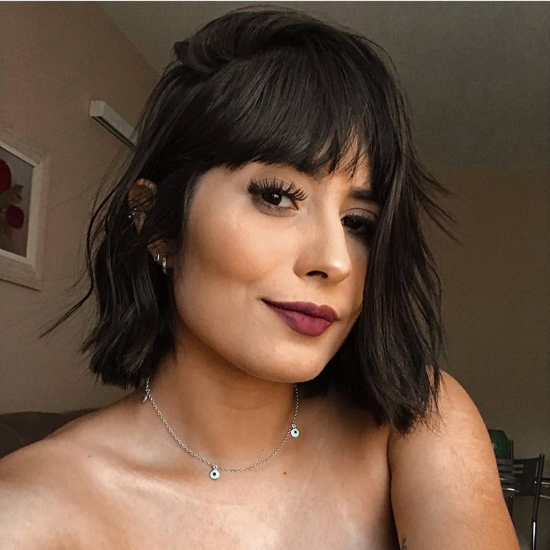 Эта стрижка акцентирует внимание на взгляде и делает его более открытым и манящим. Челку желательно срезать густой и прямой, создавая ровную линию по всей горизонтали