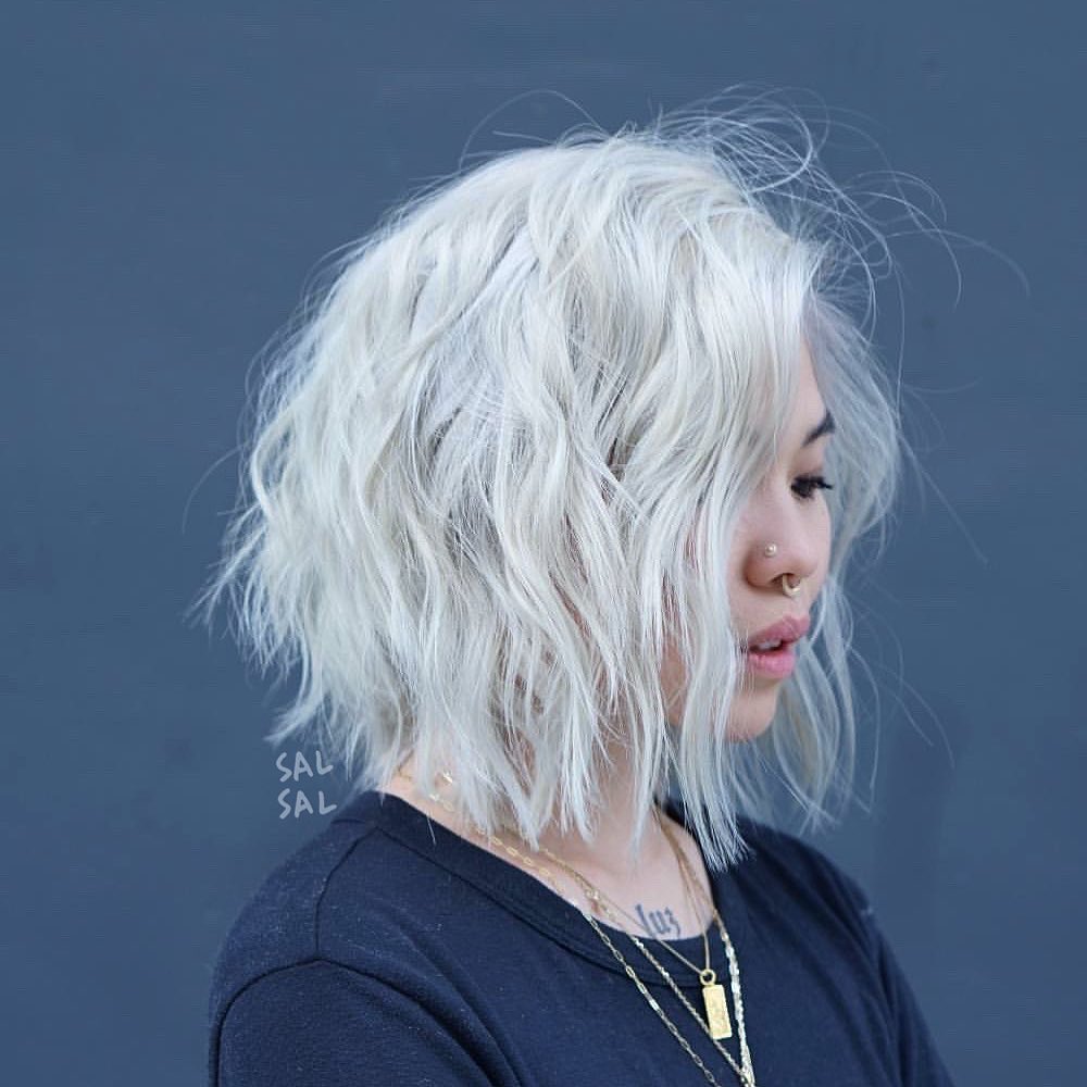 Неоднородность срезов и отсутствие четких прямых линий делают эту прическу яркой, притягивающей к себе взгляд.
