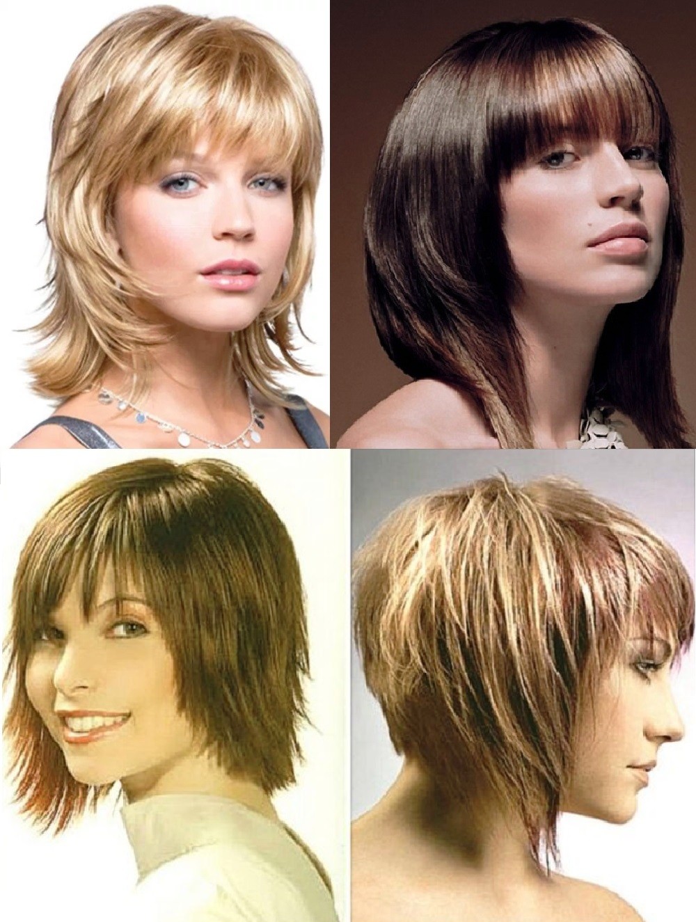 Основные отличия — многослойность. Благодаря небольшим приемам (косая или ровная челка, филировка концов волос, асимметрия), прическа поможет визуально вытянуть или округлить лицо красавицы, сделать внешность более гармоничной.