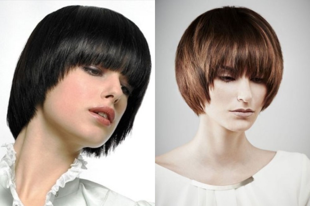 Модель без челки зрительно вытянет форму лица, увеличит лоб, отвлечет внимание от глаз, носа. Классика с челкой хорошо смотрится в темном цвете, без челки — в светлом