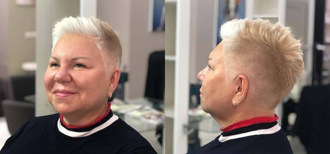 Короткие стрижки для полных женщин предполагают уменьшение длины волос на висках и затылке и увеличение объема вверху. Такой вариант моделирования прически предлагает стрижка гарсон.