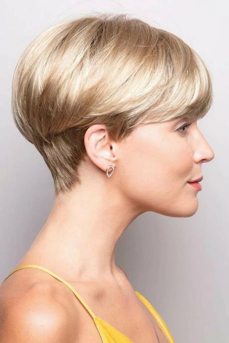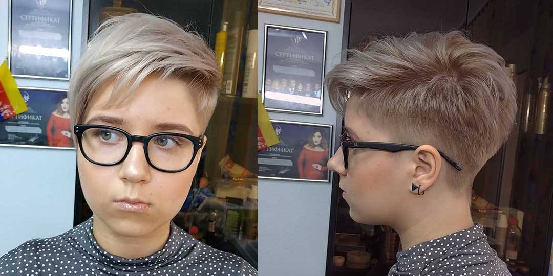 Совсем юные девочки-подростки часто хотят выглядеть старше, и короткая стрижка может в этом помочь. Для этих целей не нужно выбирать градуированные стрижки или варианты, подразумевающие диагональную геометрию снизу вверх по направлению от затылка к лицу. Наоборот, лучше, когда у лица пряди длиннее, а сзади короче: это позволяет дополнительно выделить скулы и делает лицо более зрелым. Также хорошо смотрится классическое «каре» и короткая лесенка, тщательно обрамляющая лицо.