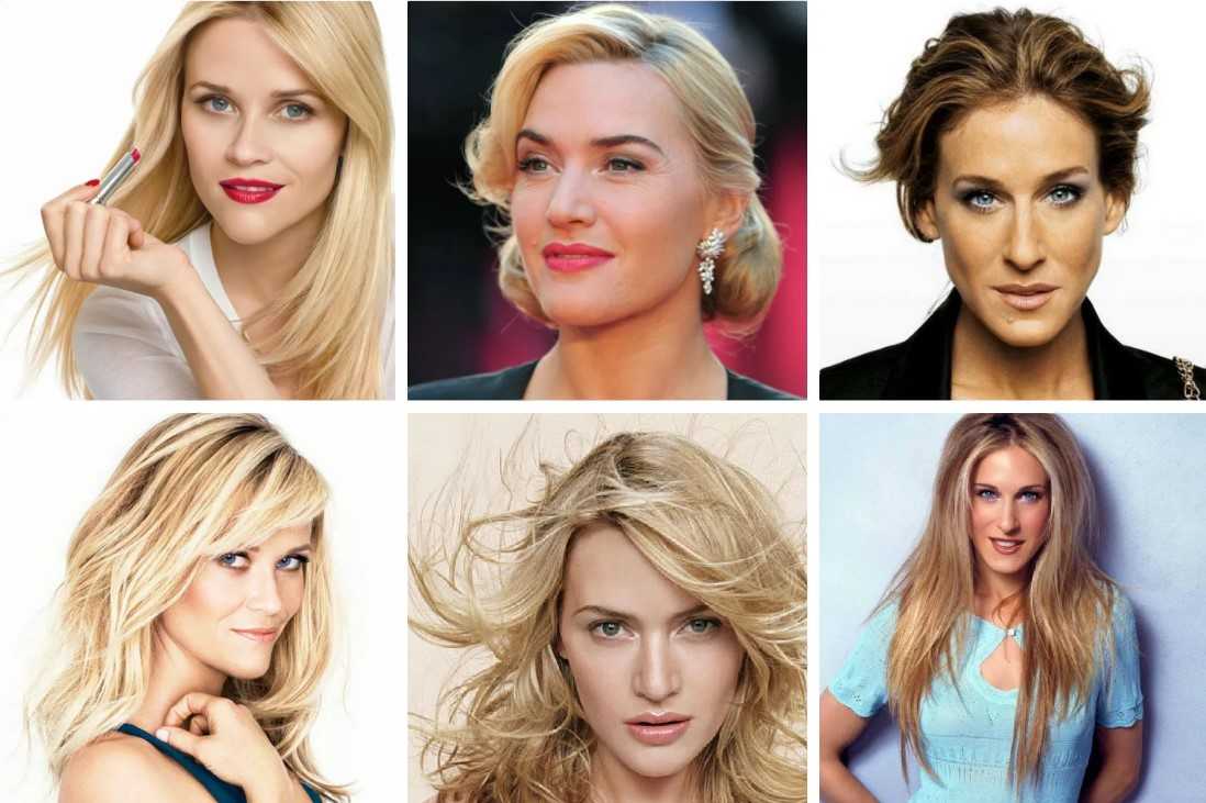 Окрашивание волос — идеальный способ уменьшить диспропорции лица. Используйте осветление, мелирование, чтобы сгладить контраст темных корней у линии роста волос и белоснежной кожи.