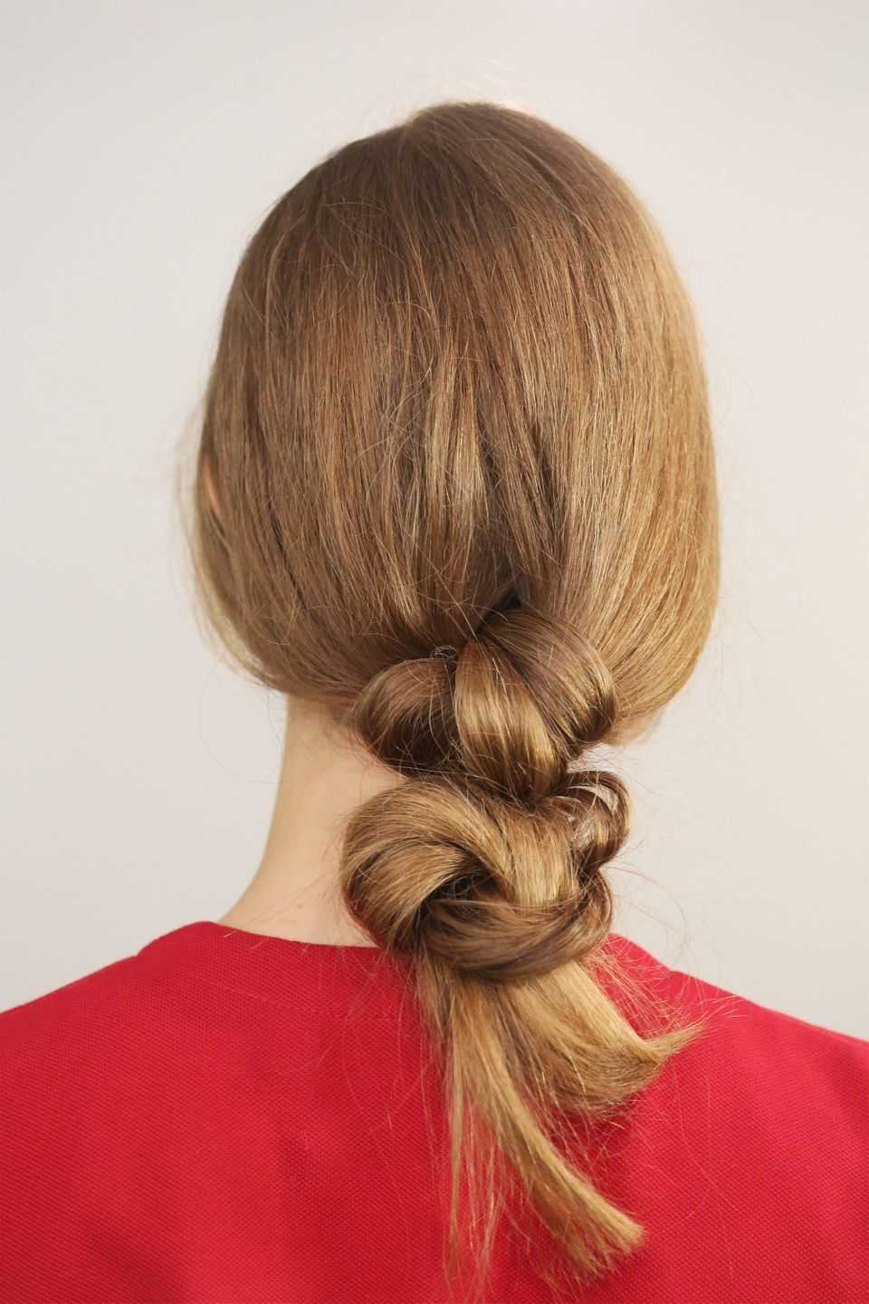 Чтобы создать трендовую прическу с узлом необходимо собрать волосы также как в хвост, при этом не высвобождать их от резинки для волос. Примеры таких укладок вы можете видеть на фото-ниже. Несмотря на повседневный вид такой укладки, она выглядит очень интересно и естественно.