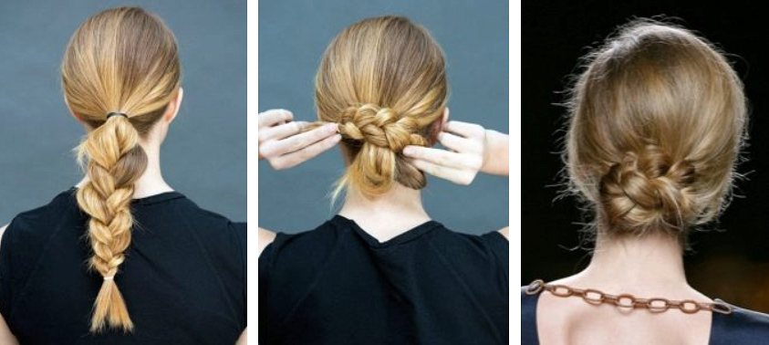 Освежить привычный имидж можно, скрутив из одной косы на затылке пучок