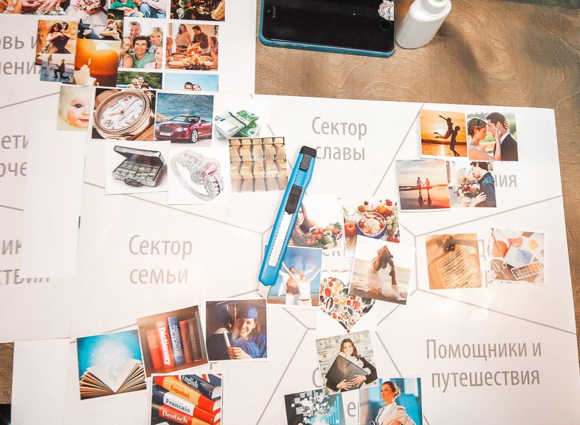 Если у вас есть возможность, карту желаний можно разделить на определенные разделы, такие как любовь, карьера, семья, богатство, путешествия, саморазвитие и т.д., и подбирать фотографии соответствующие разделу карты. Уделяйте созерцанию вашего творения хотя бы несколько минут в день, и вы увидите, как ваши желания становятся реальностью благодаря данной технике исполнения желаний.