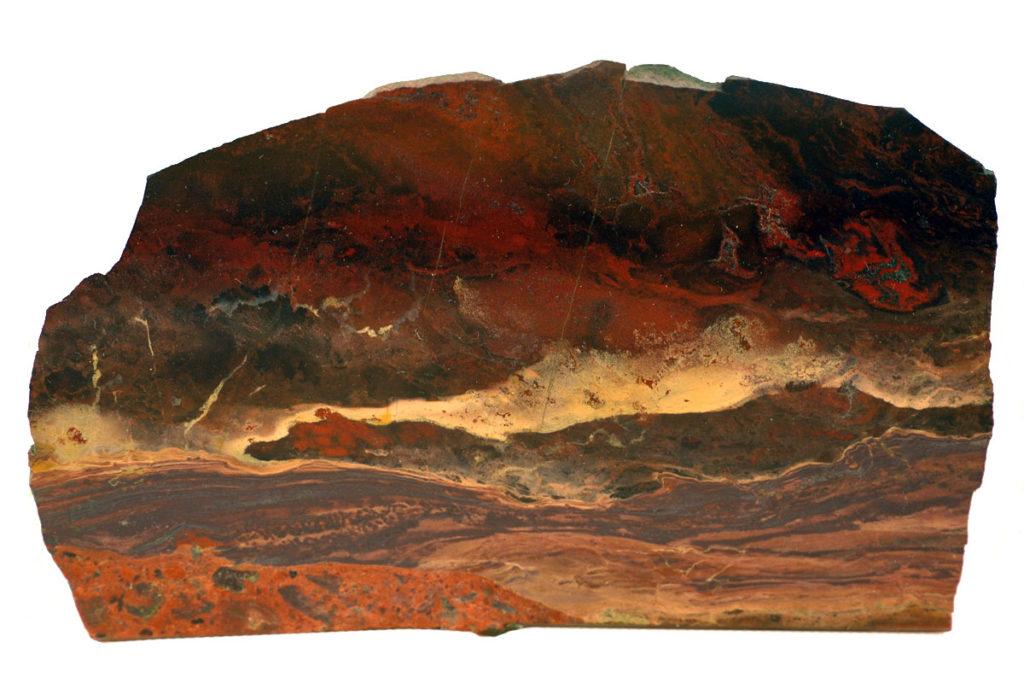 - Пестроцветный минерал. Он имеет следующий состав: магнетит, кварц, гранат, гематит. Этот вид в свою очередь делится на следующие подвиды: ситцевые, пятнистые, брекчеевидные, концентрические, струйчатые камни.