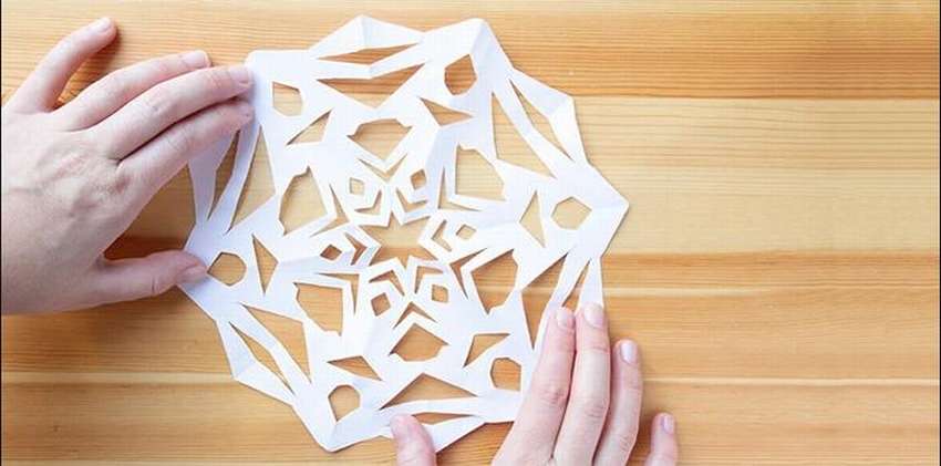 Бумагу можно взять любую, но главное понимать, что чем она тоньше, тем легче будет вырезать узоры и изделие получится более воздушной. Бумагу подбирают ещё в зависимости от того, для чего вы будете использовать снежинки. Если собираетесь клеить на окна, то можно вырезать из салфеток. Планируете сделать гирлянду, то подойдёт белая или цветная офисная бумага, яркие странички из журналов, фольга.