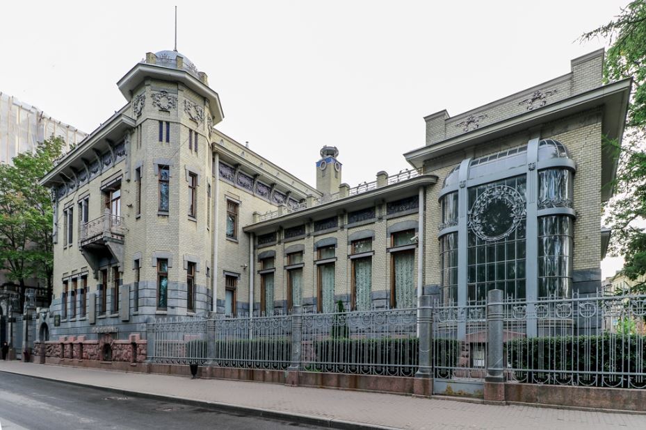 Изящный особняк, построенный в 1904-1906 гг. архитектором фон Гогеном для прославленной балерины императорского театра, является старейшим зданием Троицкой площади в СПб. Игривая асимметрия, строгая элегантность, плавные линии, изящные фасады выдают характерный для маэстро стиль модерн. Выразительно смотрится на экскурсии буйство красок отделочных материалов: алые, серые гранитные плиты, кирпичная облицовка светлых тонов, синяя майолика, кованые орнаменты. Придомовой сад, ограждение, угловая беседка создают ощущение уютной камерности.