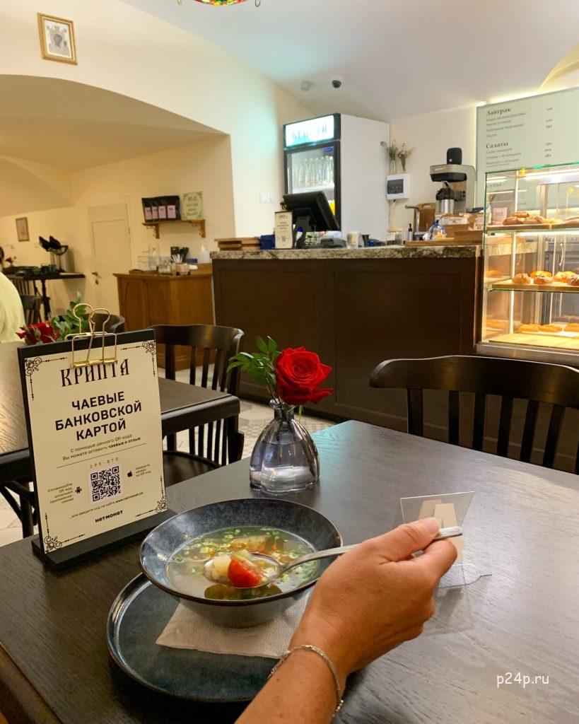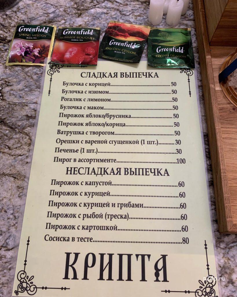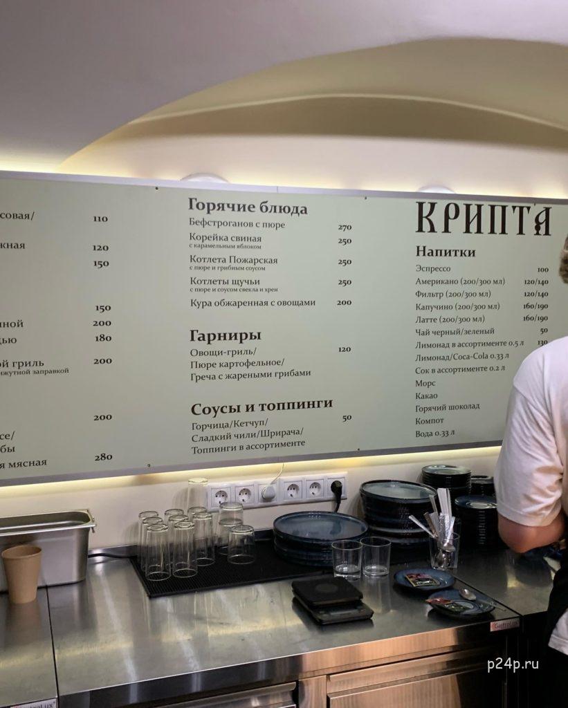 Кафе «Крипта» находится в цокольном этаже Казанского собора. Цены здесь немного выше, чем в обычных столовых и придётся немного подождать, так как еду готовят, а не разогревают. В подборку недорогих мест где поесть в Петербурге кафе «Крипта» попало за его уникальное место, необычную атмосферу и скромную непритязательную обстановку. К тому же питание там почти как домашнее, а цены намного ниже чем в ресторанах.