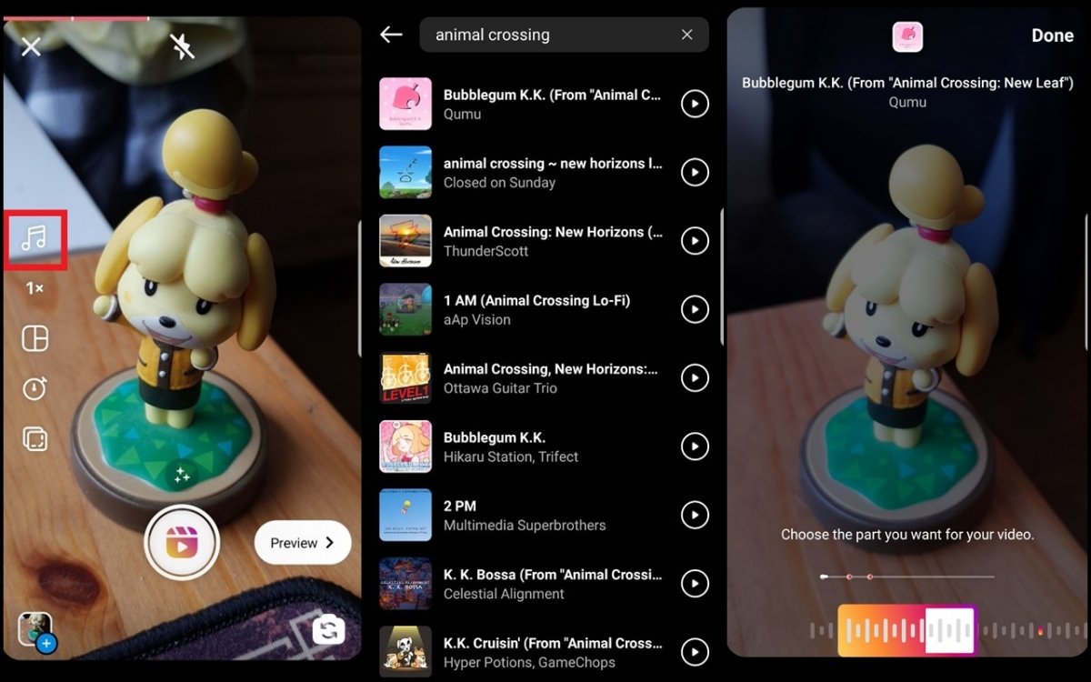 позволяет использовать собственную музыку. Предоставляется возможность обрезать аудиодорожку