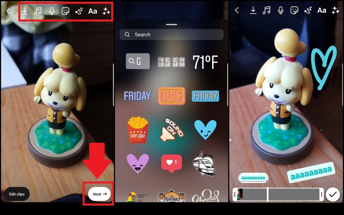 - наложите текст, стикеры, если в этом есть необходимость, добавьте аудиодорожку;