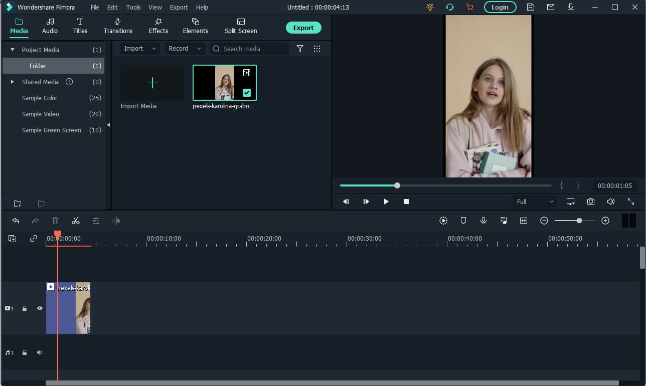 Запустите FilmoraTool и нажмите кнопку Импортировать вкладку, чтобы выбрать видеофайл, который вы хотите использовать. Затем перетащите импортированный медиафайл на панель временной шкалы.