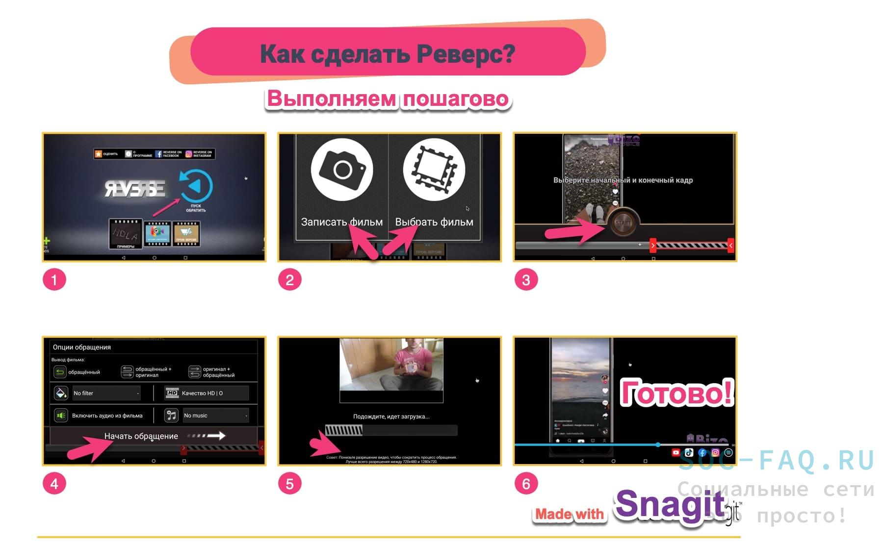 Обладатели мобильных устройств, снимающие ролики для TikTok на строенную камеру или имеющие на локальном хранилище уже готовый материал, могут использовать как приложение социальной сети, так и дополнительные решения для создания эффекта обратной съемки. Мы рассмотрим пример использования встроенного редактора и двух инструментов от сторонних разработчиков, а вы сможете выбрать оптимальный для себя метод.