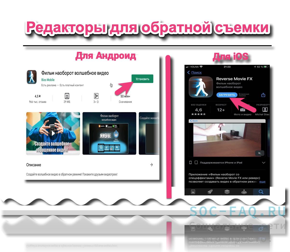 «Фильм наоборот волшебное видео» (для Андроид) или «Reverse Movie FX» (для iOS)