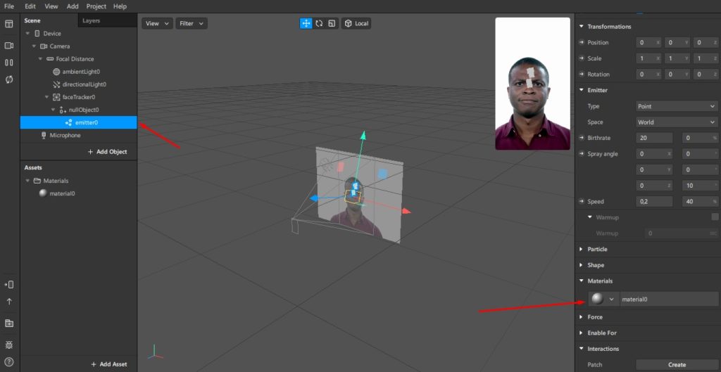 5. После этого создаем новый материал. Нажимаем на только что созданный Emitter. И в правой части экрана выбираем Materials и кнопку +.
