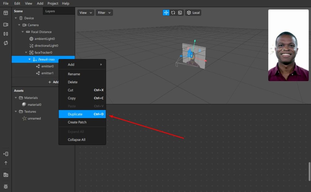 Теперь правой кнопкой мыши дублируем Левый глаз: